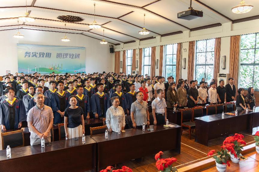 在庄严的国歌声中,毕业典礼正式拉开帷幕。