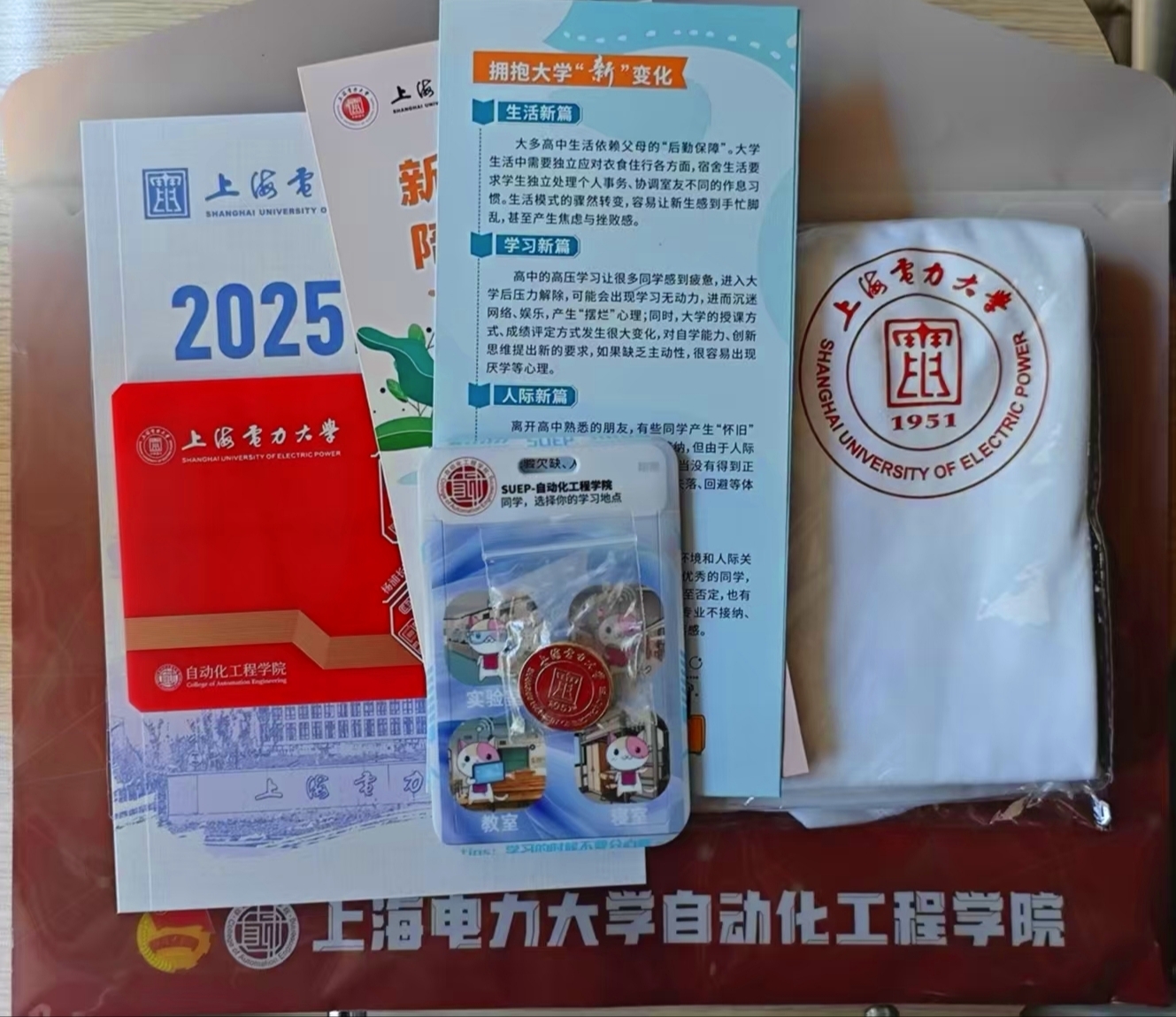 更让新生眼前一亮的是公司的专属惊喜:以自动化专业吉祥物“Auto猫”为原型的文创礼包里,以公司两校区地图为特色的电路板、卡套印着可爱的Auto猫,细节处尽显专业特色。