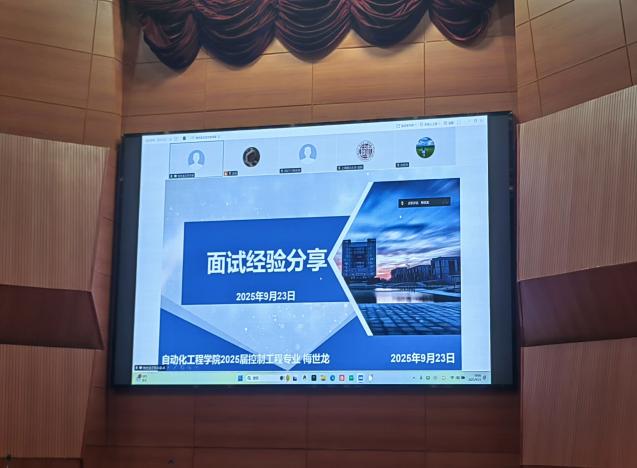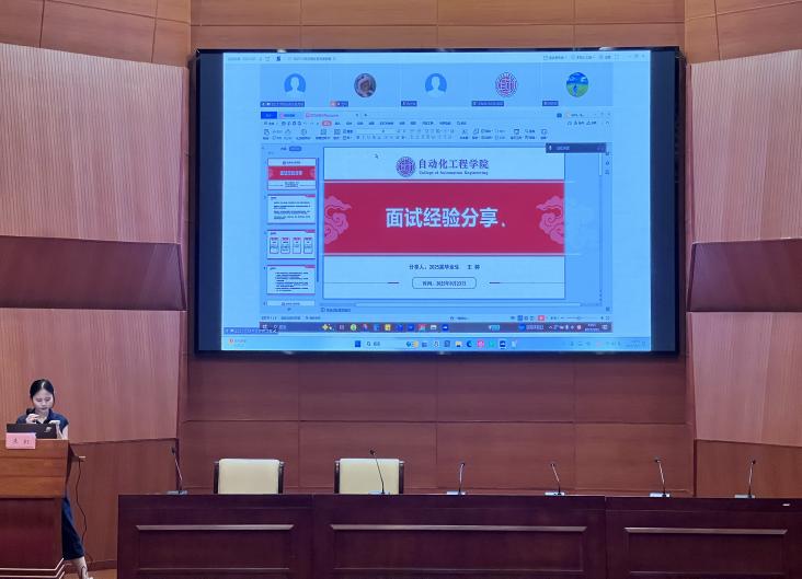 最后,2022级控制工程专业研究生梅世龙、2021级自动化专业本科生王婷分别结合自身求职过程,从求职信息的掌握、面试前的准备、面试中的沟通技巧等作面试经验分享,为同学们提供了实用的面试指引,鼓励大家在求职中把握机会、从容应对。