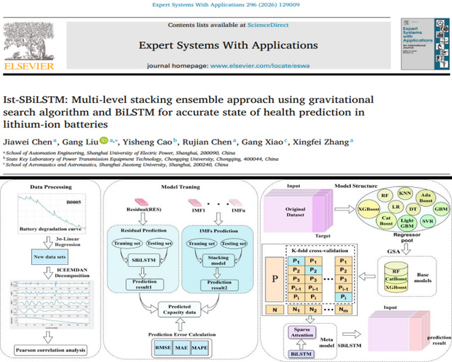 在《Expert Systems with Applications》上发表的论文“Ist-SBiLSTM: Multi-level stacking ensemble approach using gravitational search algorithm and BiLSTM for accurate state of health prediction in lithium-ion batteries”(DOI: 10.1016/j.eswa.2025.129009)针对锂离子电池容量再生现象及健康状态预测问题,提出了一种基于自适应级联优化的多层混合预测方法 Ist-SBiLSTM,显著提高了预测准确性。