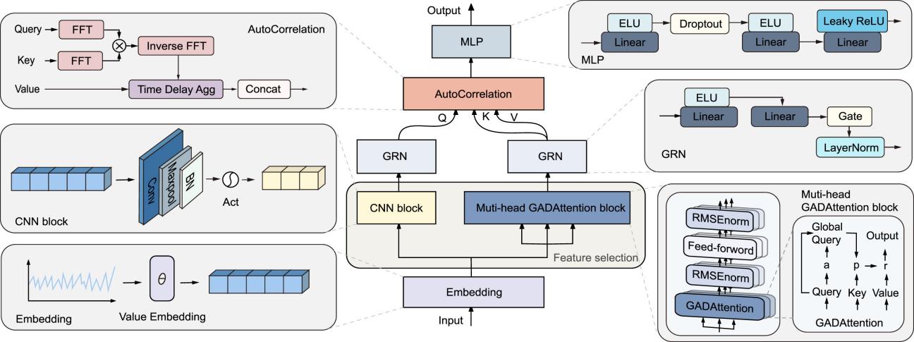 在《Energy》上发表的论文“CGAformer: Multi-scale feature Transformer with MLP architecture for short-term photovoltaic power forecasting”(DOI: 10.1016/j.energy.2024.133495)针对光伏发电的强波动性、高间歇性及明显周期性特点,提出了基于一维卷积神经网络、全局累加注意力和自相关的混合模型 CGAformer,用于短期光伏功率预测,实现了多尺度特征的高效捕获。