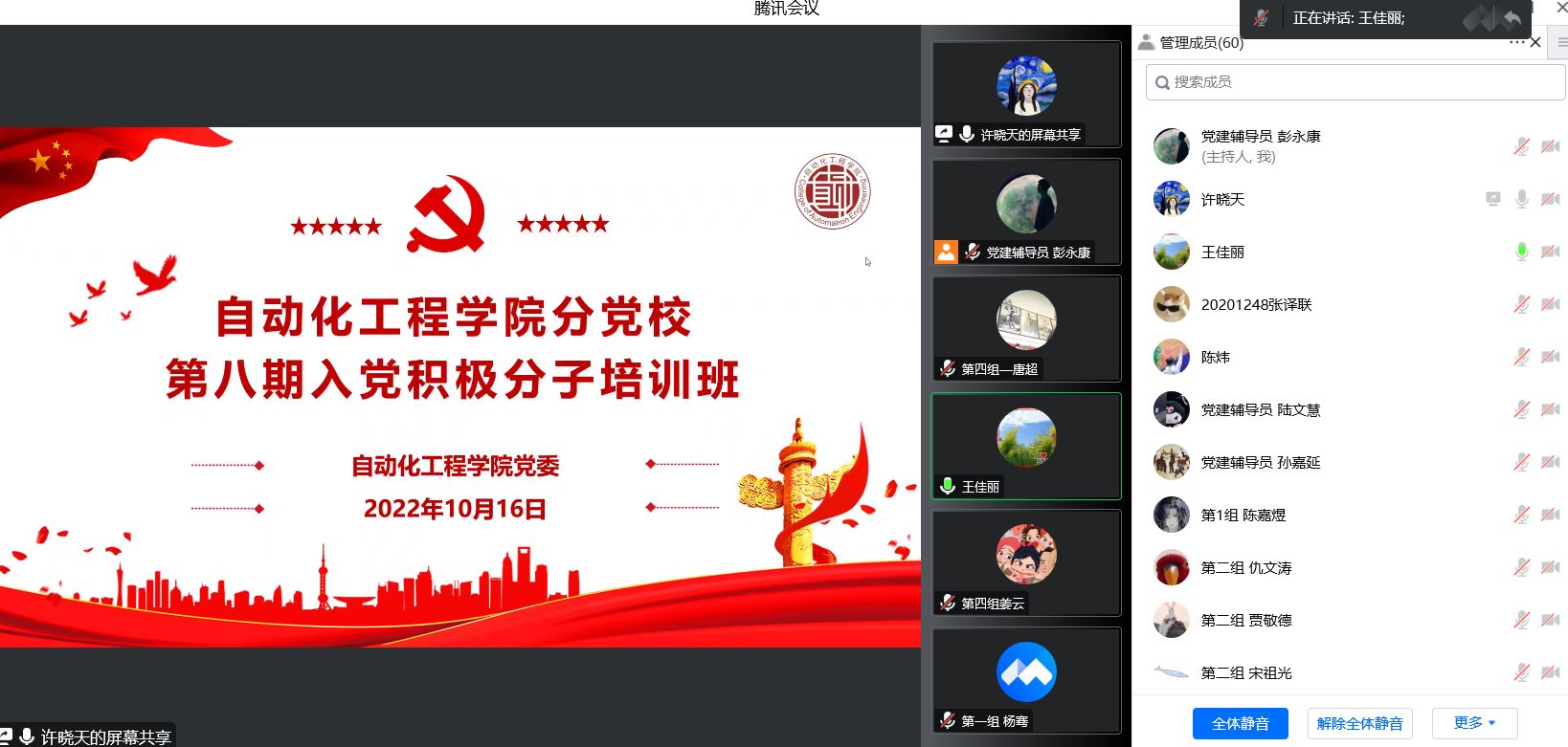 为提高入党积极分子的思想政治素质和理论水平,进一步端正入党动机,自觉用党员的标准严格要求自己,以实际行动争取早日加入中国共产党。10月16日,304永利集团分党校通过腾讯会议举办第八期入党积极分子培训开班仪式,公司党委副书记王佳丽、组织员许晓天、全体员工党支部书记以及51名入党积极分子参会。