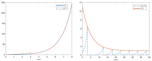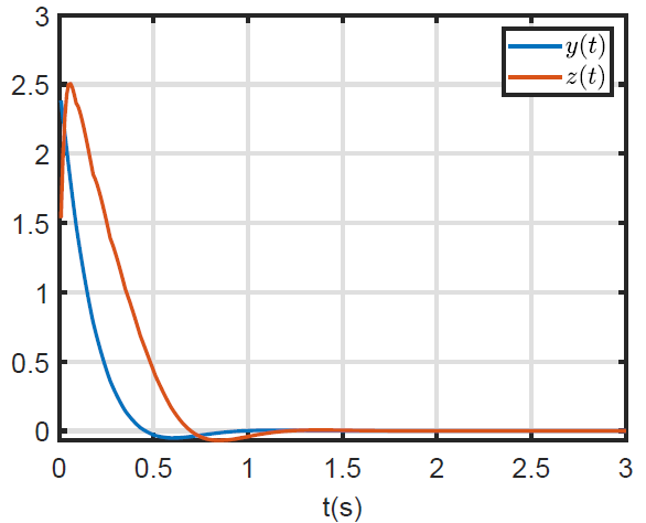 图3 模糊奇异摄动系统的动态事件触发异步控制框架及仿真结果