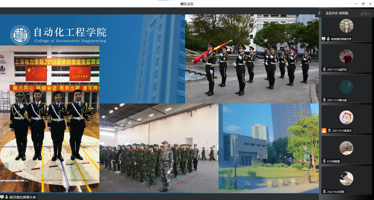 杨昌雷学长从坚定报国之志、争当优秀士兵以及传承老兵精神三个方面为大家带来了自己经历的分享。通过两年的不断努力和证明,穿上梦寐以求的迷彩服开始了向往的军旅生活。安心服役,热衷本职,作为驻港军人坚定维护“一国两制”行稳致远、保家卫国、捍卫领土主权不容侵犯。退伍不褪色,永葆军人本色。回到公司后积极参与管控志愿者的工作,第一时间号召成立了一支退役士兵服务队,每天奔赴抗疫前线。正如习近平总书记所说:“当代中国青年生逢其时,施展才千的舞台无比广阔,实现梦想的前景无比光明。”