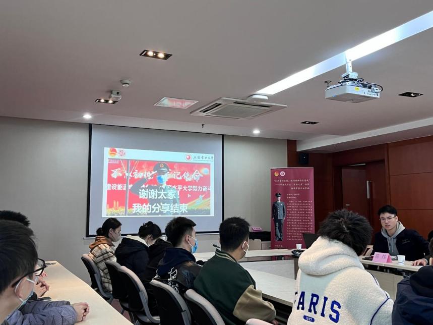 杨昌雷同学用青春践行理想信念,展现了当代中国青年老员工的使命担当。聆听完杨昌雷同学的事迹,是振奋的,是感动的,也是深受鼓舞的,在会上同学们和杨昌雷积极交流互动。同学们问:“军队生活对你最大改变是什么?”杨昌雷同学坚定的回答道:“主动,军队对于我最大的改变是从被动变成主动,从入伍那天开始军人这个身份就一直伴随着我,激励着我面对任何困难都要冲锋在前,面对危险一定会第一时间主动站出来保护身后的人”。这种精神是杨昌雷同学的人生财富,也是上电学子的精神榜样。