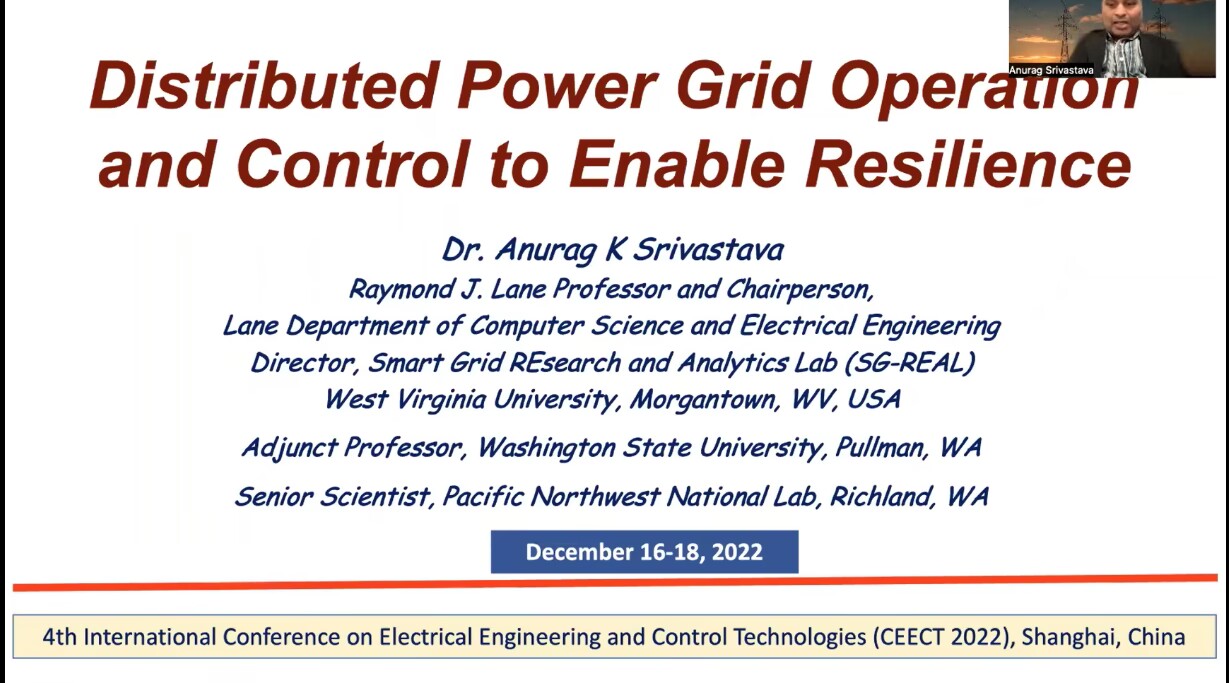本次大会共邀请到6位国内外著名专家做大会主旨报告和2位业内专家做特邀主题报告。IEEE会士、美国西弗吉尼亚大学Anurag Srivastava 教授首先带来了题为《Distributed Power Grid Operation and Control to Enable Resilience》的报告,重点讨论了实时网络环境下电力数据分析和分布式优化实例,以在DER-rich的环境中为电网实现弹性控制提供支持,并对当前研究技术的局限性和未来的研究需求给出展望。