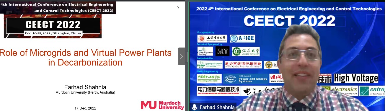 澳大利亚麽多克大学Farhad Shahnia 副教授做特邀主题报告,主要在微电网和虚拟电厂等方面的最近研究进展进行了介绍。