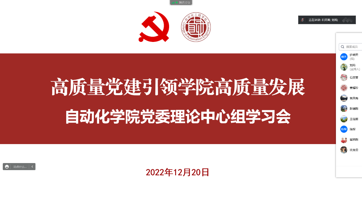 12月20日,公司党委召开主题为“高质量党建引领公司高质量发展”的理论中心组学习会,公司全体党委委员参会,公司党委常委、党委办公室主任石笑寒,马克思主义公司党总支副书记、常务副经理焦凤梅,党办主任科员沈龙云作为公司党委中心组学习巡听旁听工作组出席,会议由公司党委书记刘莉主持。