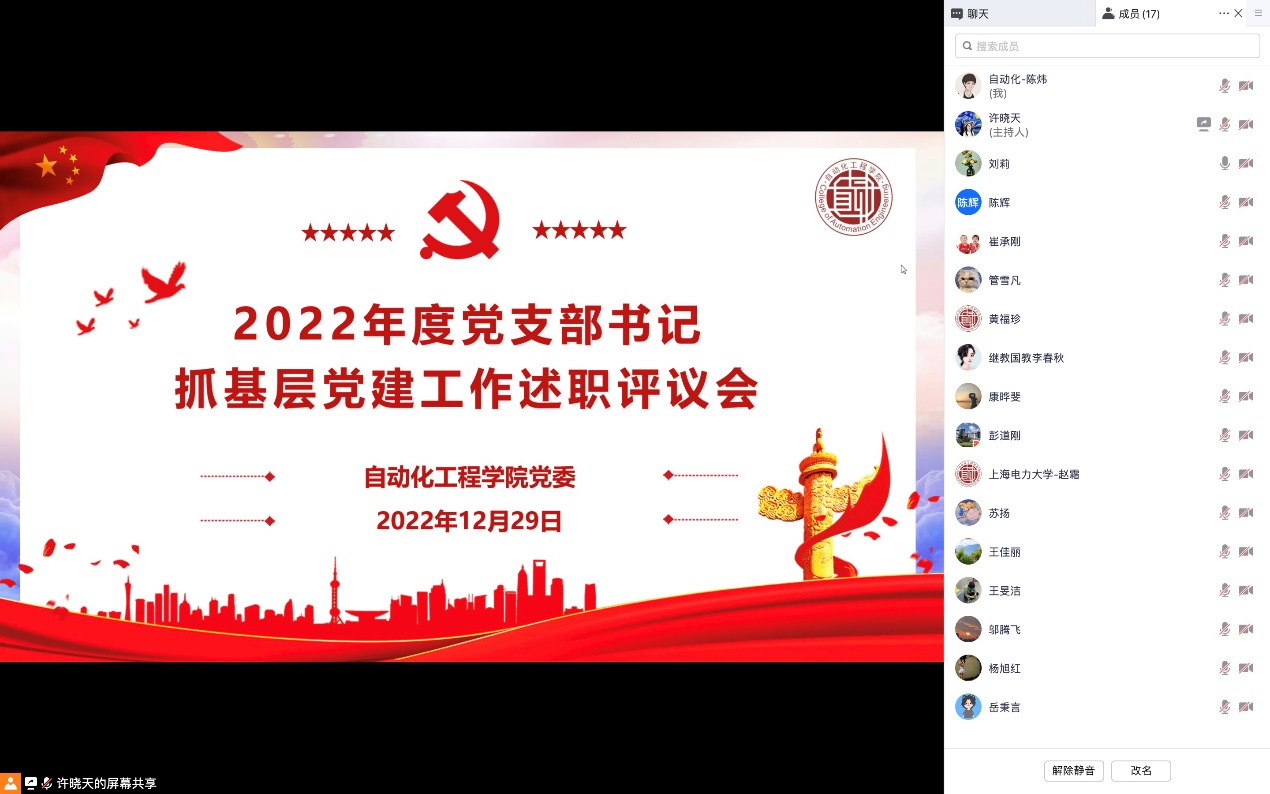 12月29日下午,公司党委召开2022年度党支部书记抓基层党建工作述职评议会,公司党委委员、专兼职组织员、全体党支部书记参会,继续教育公司(国际教育公司)党总支专职组织员李春秋列席,会议由公司党委专职组织员许晓天主持。