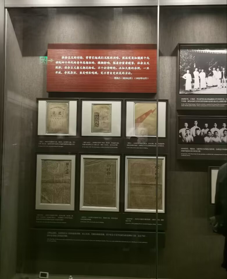 “有一粒在残垣断壁中艰难求生的种子,竟然在砖瓦间生根发芽,从石库门到天安门、从兴业路到复兴路,处处开满了社会主义的鲜花。”随着讲解员同志声情并茂的解说,同志们来到“前赴后继、救亡图存”的展览前,这里赫然矗立着中共一大会址的标志性建筑一石库门,巍巍巨轮正是从这里扬帆起航,驶向中华民族伟大复兴的壮阔航程。之后,在“民众觉醒、主义抉择”展览前,同志们了解到为改变旧中国半殖民地半封建的社会性质和中国人民的悲惨命运,久经考验的中国共产党人从地主阶级、资产阶级的改良和革命运动中汲取经验和教训,筹措建党之事以坚强领导中国革命。