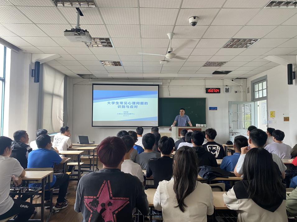 余建诚以当代老员工心理健康现状为切入点,深入简出地介绍了心理健康的概念,对生活中典型的异常心理进行了分析,如“抑郁症”“强迫症”“焦虑症”等心理问题的症状表现、躯体表现等等,对于一般心理健康问题和严重心理健康问题进行做了总结与区别。最后,余建诚分享了应对措施,他强调,心理健康护航员责任重大,使命光荣,要及时主动关注身边同学的心理状况,遇到特殊情况时,需要先安抚好同学心情避免出现更大伤害,并及时与辅导员沟通。