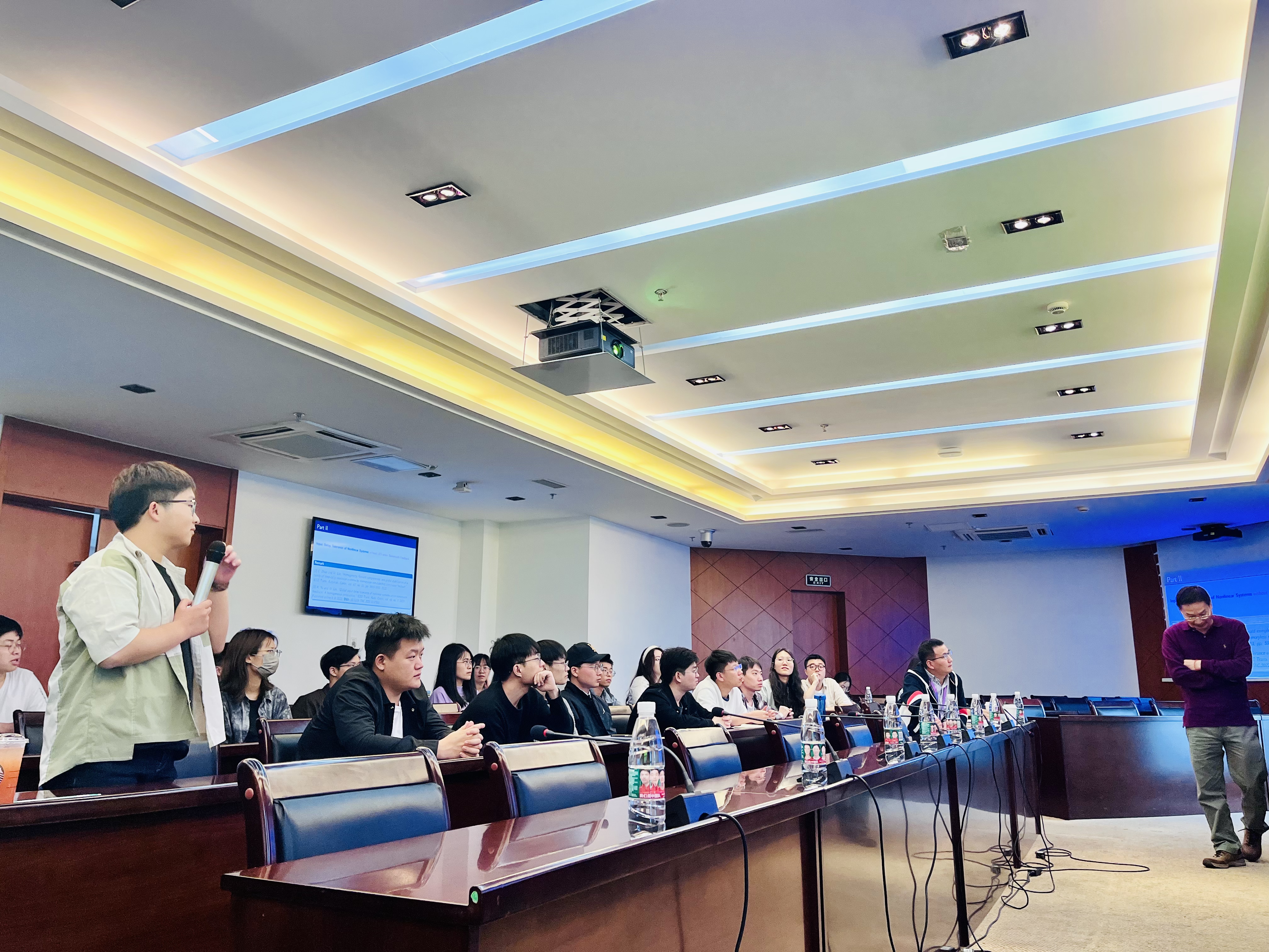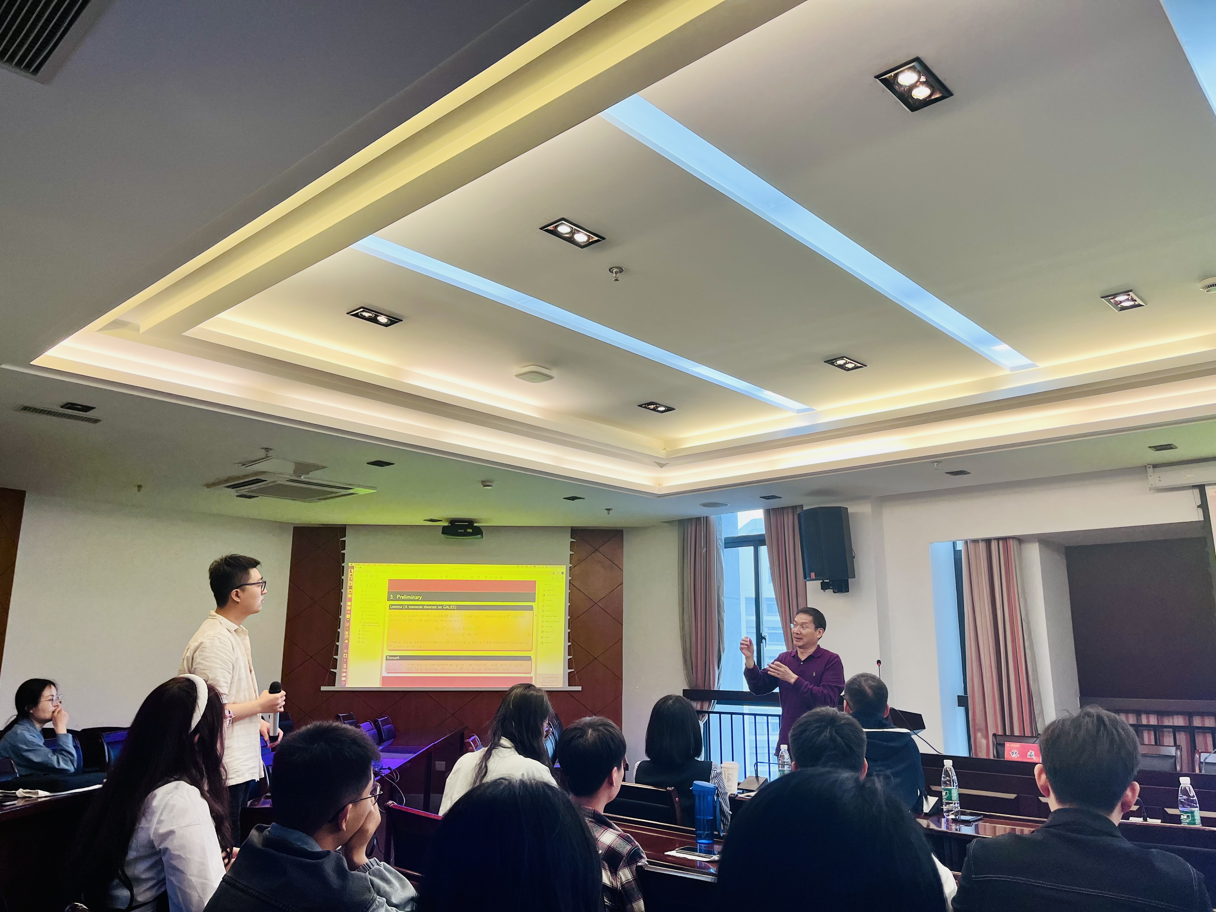 在问答环节,参会的研究生们积极发言,对林教授在分享过程中提到的一些基本定义、参数量化过程、伴随函数设置等表达出了自己的疑惑。林教授针对同学们的提问一一做出了详细的解答,不同学科背景的研究生们都展示了自己对该领域的独特视角和深入思考。专家和听众之间的互动、碰撞激发出了新的火花,为深化与拓展该领域的研究提供了重要的启示和支持。