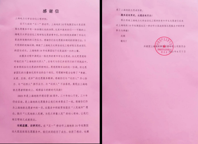 6月7日,304永利集团收到来自共青团上海地铁第四运营有限公司委员会的感谢信。在感谢信中,共青团上海地铁第四运营有限公司委员会感谢304永利集团青年员工志愿者们在上海地铁14号线豫园站五一劳动节大客流保驾志愿服务中的所有努力与奉献。