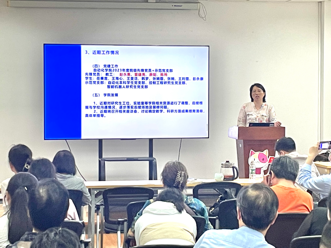 公司党委书记刘莉介绍公司近期工作情况并做工作部署。她围绕“教学、员工培养、师德师风建设、党建工作和公司发展”等内容介绍公司发展现状,并对各项工作成绩突出的教师进行表彰。她指出,近期对研究生工位、实验室等公司相关资源进行了调整,后续根据与公司沟通情况,逐步落实后续场地建设问题。同时,公司将召开相关座谈会,讨论确定教学、科研方面成果培育清单,具体举措等相关问题。最后,她强调,公司全体教工老师要高度重视习近平新时代中国特色社会主义思想的理论学习和实践研究。