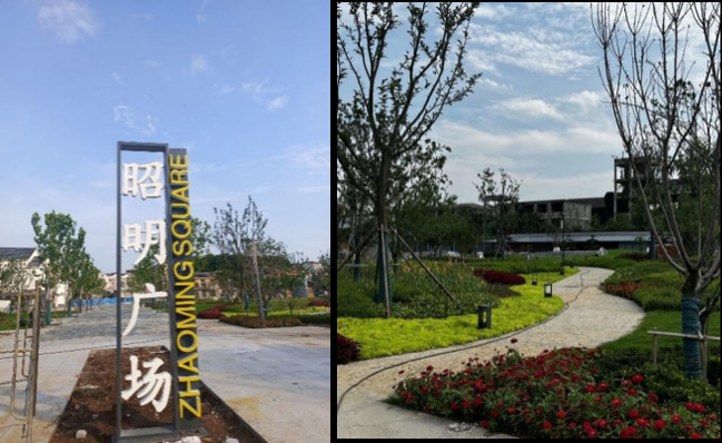 昭明广场,其中“昭”和“明”二字均是明亮的意思,此广场的建设不仅便民利民,同时推动了小镇当地的现代化建设,展现新时代精神文明风貌。在这里,实践队队员对广场建设的负责人进行了采访,了解到广场今年年初开始兴建,目前建设进程稳步推进,广场很多设施也已建成,镇民对于广场的兴建也充满期待和关注。