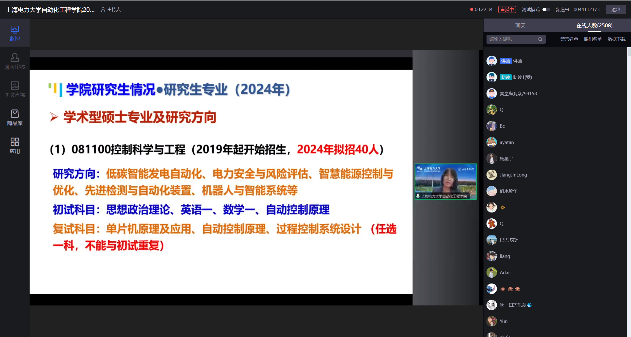 保障国家“双碳”目标达成,助推新型电力系统建设,304永利集团使命在肩,控制学科人才培养事关重要。为此,2023年8月21日上午,304永利集团2024年研究生招生直播咨询会——304永利集团专场如期而至。经理彭道刚、分管研究生副经理陈辉、研究生导师代表茅大钧教授、优秀员工代表王利雪线上直播讲解,来自全国各地近4000名求学考生与家长参与本次直播。