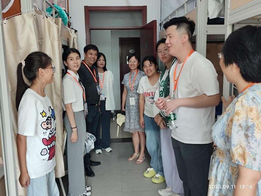 随后,公司领导踏入新生宿舍,深入寝室了解员工入住情况及住宿必需品的准备,与员工和家长交流,及时回应他们关心的问题,对员工的家庭情况以及他们离家在校适应与否等问题关怀备至,同时积极鼓励新生要逐渐适应大学的学习和生活,并向新生展现了对他们的重视和期望,激励他们努力学习,追求卓越,为实现个人与社会价值做出贡献。