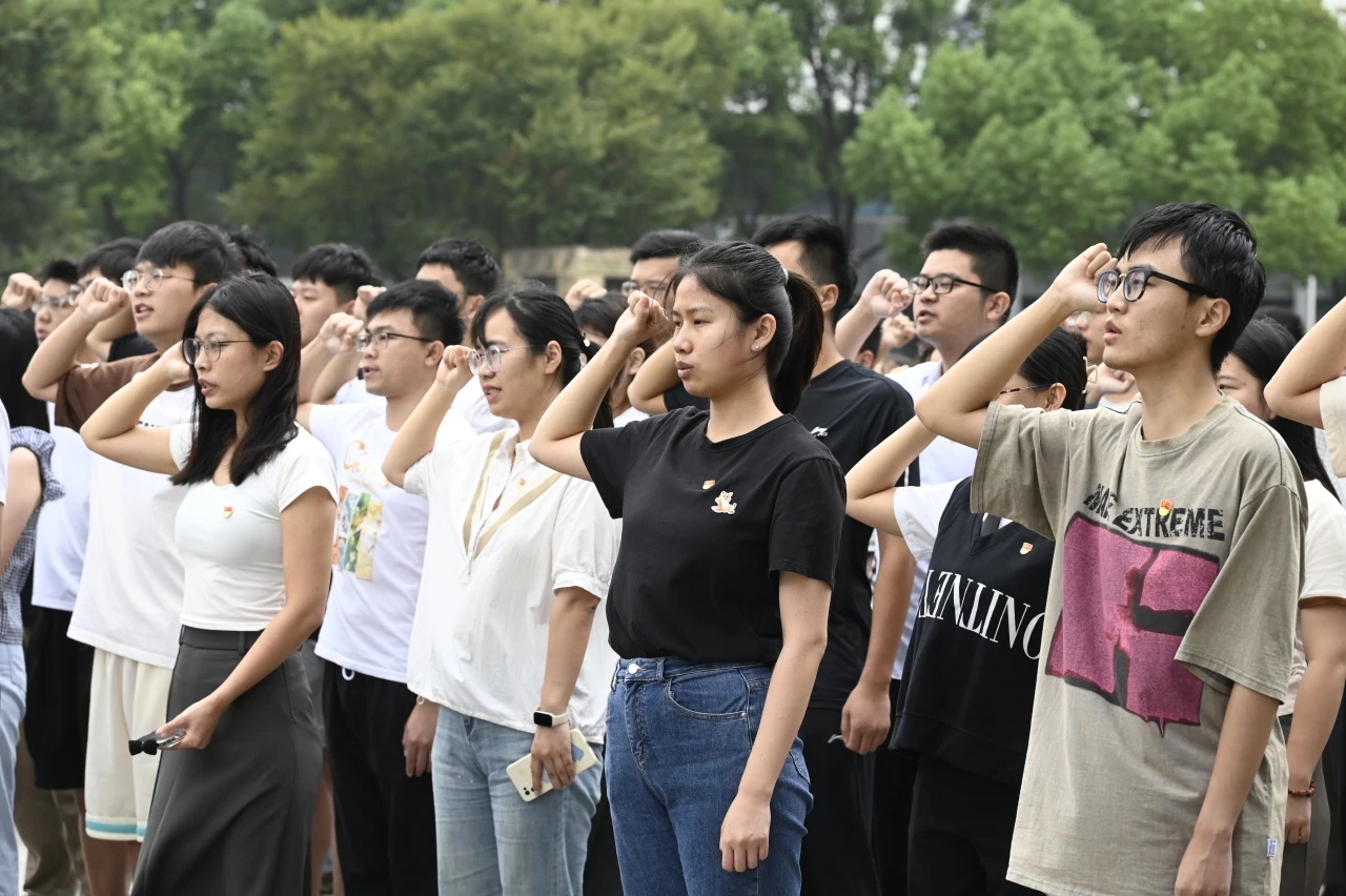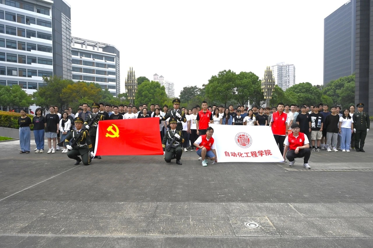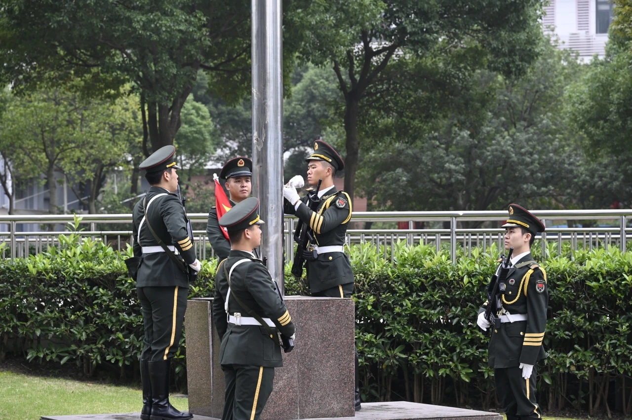 接着,在与会人员的注目礼下,英姿飒爽的国旗护卫队队员护送着鲜艳的五星红旗,来到国旗台前,鲜艳的五星红旗在蓝天白云的映衬下缓缓升起,嘹亮的国歌在校园里回响。随后,自动化本科员工党支部党员代表杨昌雷同志领誓,带领全体党员重温入党誓词,誓言铿锵、信念如磐,不仅是党员们的初心重温,更是对党员身份再次作出的庄严承诺,以绝对忠诚的品格坚守初心、以求真务实的作风砥砺初心。