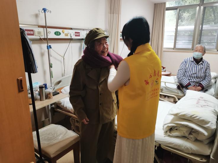 病房探访时,“杨光志愿队”队员们精心准备了御寒的围巾和帽子向离退休老前辈们致以问候,希望老前辈们共同度过一个温暖冬天。短暂的时光,一老一少却相处的十分融洽,关心与照顾使老前辈们感受到家人的温暖,家的温馨。“304永利集团的老员工志愿者来看望我们,我们非常开心,欢迎你们常来。”老前辈们开心的表示。