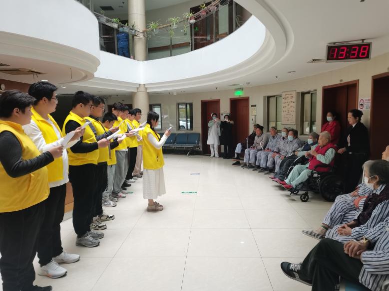 当天上午,“杨光志愿队”11位志愿者前往杨浦中心医院总院海山楼。志愿者们精心准备节目,为离退休老前辈们朗诵《谁是最可爱的人》,饱含深情和诗意的文字,通过青年人在新时代又一次发声,那一段段英雄故事激励着一代代青年人,志愿者们用青年人的深情向伟大的前辈们表达崇高的敬意。