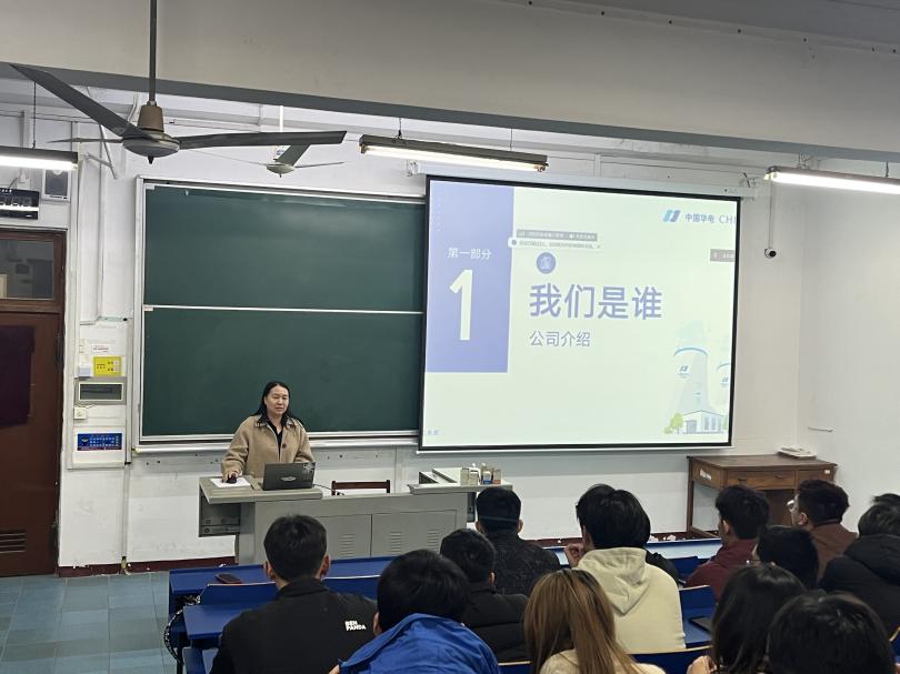 陈抒生向同学们介绍华电新疆发电有限关于我们,她表示华电始终以“奉献清洁能源、创造美好生活”为使命,忠实履行央企政治、经济和社会责任,积极服务自治区能源强区建设,为新疆国民经济发展和打赢脱贫攻坚战、蓝天保卫战贡献了华电力量。强调随着电力能源转型战略目标的不断推进,华电新疆也迎来了更大发展机遇,集团公司大力推进新能源的发展,装机容量、人才需求在未来两年年内将有显著的增长。同时,她指出新疆地大物博,欢迎同学们到广阔天地发挥才干建设祖国。