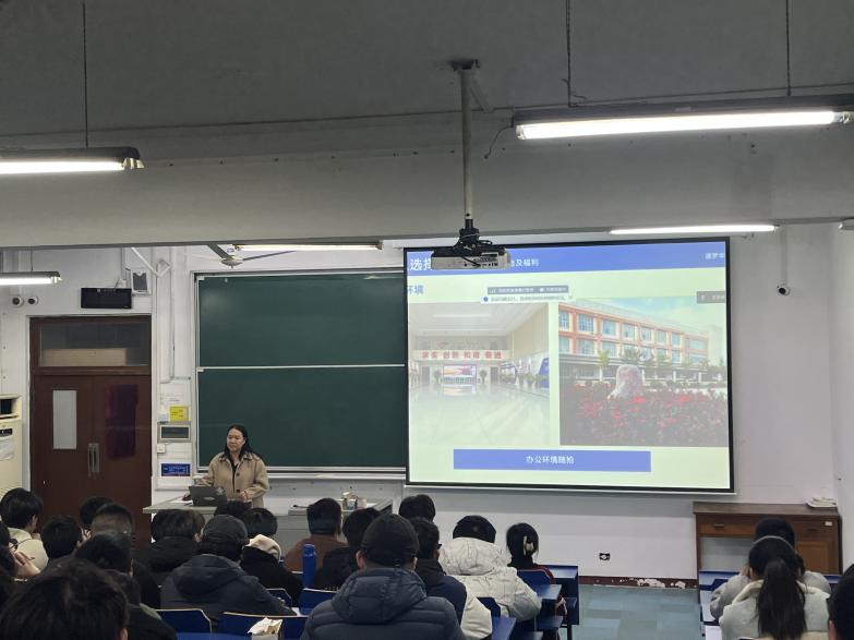 随后,陈抒生与同学们分享了关于求职面试技巧等方面知识,并以华电新疆发电公司为案例讲解一般企业的晋升通道、薪酬体系以及老员工在公司需要做的知识技能储备。她鼓励在校老员工认真学习课程取得一个好的绩点成绩,多参加学科竞赛获得项目经历,多参加企业实习提升实践实操能力,明确职业生涯发展目标针对性做准备。同时她表示,企业招聘时人事只能通过简历上内容快速了解求职者情况,一份好的简历至关重要,考研或就业都需要准备一份靓丽的简历并不断打磨。现场同学反映热烈,不时提问,与企业积极交流。