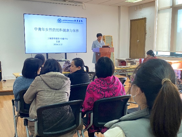 新华医院的王波副主任医师做了“中青年女性的妇科健康与保养”的报告,其中重点讲了宫颈癌、乳腺癌等常见疾病的成因、预防及治疗,陆小溦副主任医师做了“更年期妇女的健康与保养”的报告。