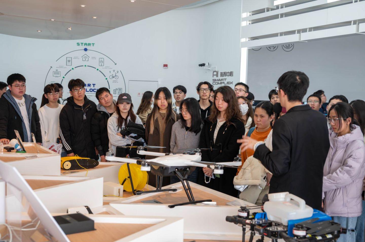 张江人工智能岛AI体验中心是上海首个以人工智能为主题的展厅,也是国内首个“5G+AI”全场景应用示范展厅。步入展厅后,同学们通过宣传片概览了张江人工智能岛的建设历程、企业布局、合作项目、创新平台等基本情况。“请为我们绘制一条五彩斑斓的中国龙”“请为我们设计一份实践调研报告”……在讲解员的指导下,同学们亲测了AI作画技术和文本生成技术。紧接着,讲解员带领同学们走进AI校园、AI医疗、AI指挥中心和AI产品展示等展厅,近距离观察和体验人工智能领域领先产品,如智能斑马线、智能教室、虹膜识别技术、无人机等科技,同学们切身体验人工智能所带来的智能化变革,感受到科技自主创新的重要性以及人工智能所蕴含的巨大潜力。