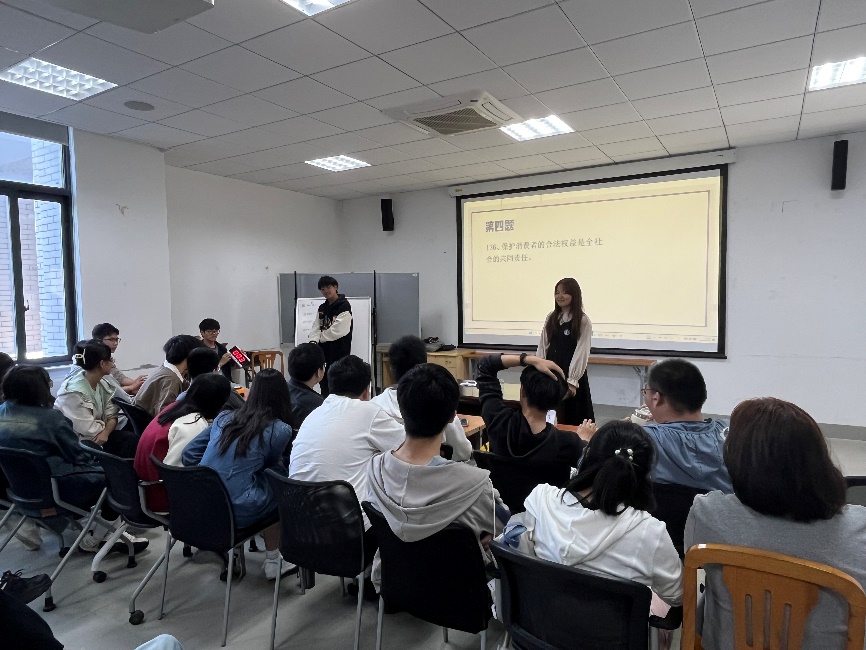 本次知识竞赛分为上下半场,各班派出代表通过抽签形式决定参赛组别和顺序,每半场4支队伍参赛。竞赛内容涵盖消防安全、防范电信诈骗、交通安全、网络安全、人身安全等多方面知识,分为判断题、单选题和多选题模块,采用现场竞答方式和积分制计分原则有序开展。各班参赛选手在比赛过程中表现出空前的高涨热情,在抢答过程中,大家神采奕奕、摩拳擦掌,既提升了一分安全知识水平、减少了一分自身安全风险,对班级团队协作意识和集体荣誉感也有了切实提高。