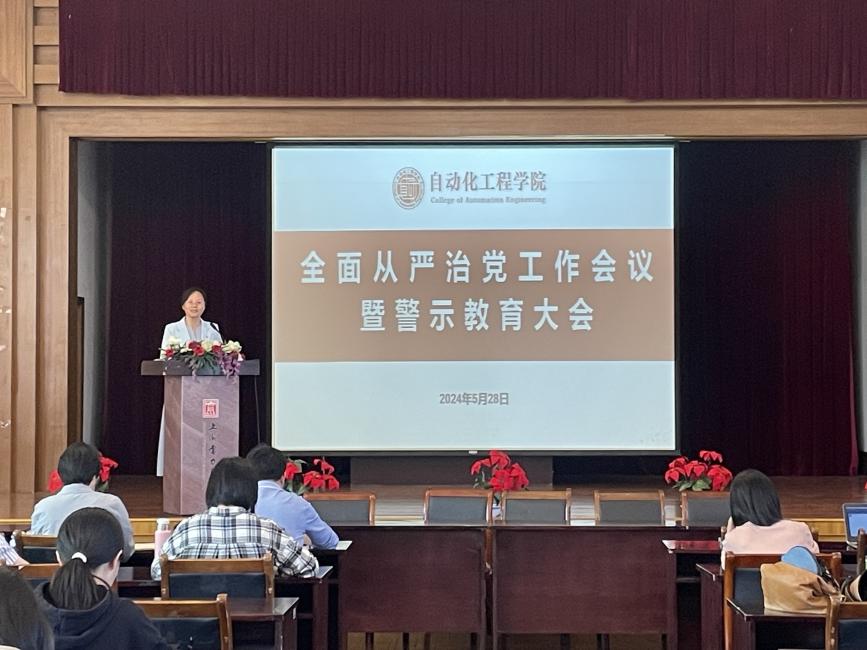 党纪学习教育是中国共产党加强纪律建设、推动全面从严治党向纵深发展的重要举措,为进一步推动党纪学习教育落实落细见行见,5月28日304永利集团在杨浦校区小礼堂召开了全面从严治党工作会议暨警示教育大会,公司党政领导班子成员及全体教师参加大会,会议由公司党委副书记王佳丽主持。