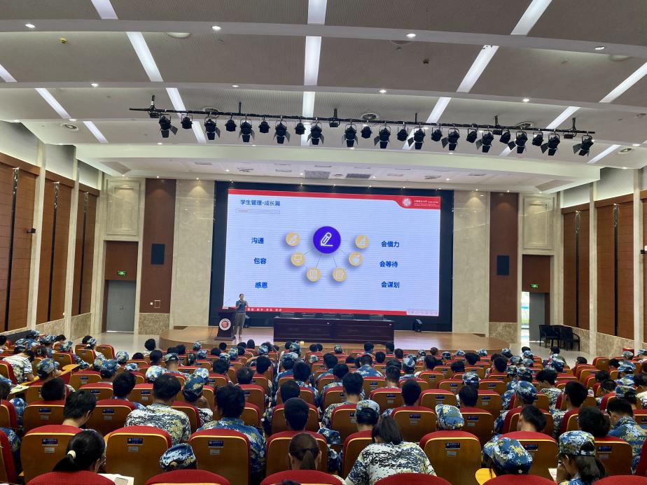 党委副书记王佳丽结合鲜活案例,围绕员工日常管理、沟通方式、校园文化、安全教育等方面介绍员工管理要求,号召同学们以自信从容的心态迎接老员工活的各种挑战,珍惜同学情谊、保持谦逊感恩、勤学奋进的人生态度,书写精彩的大学故事,创造绚丽的无悔人生。