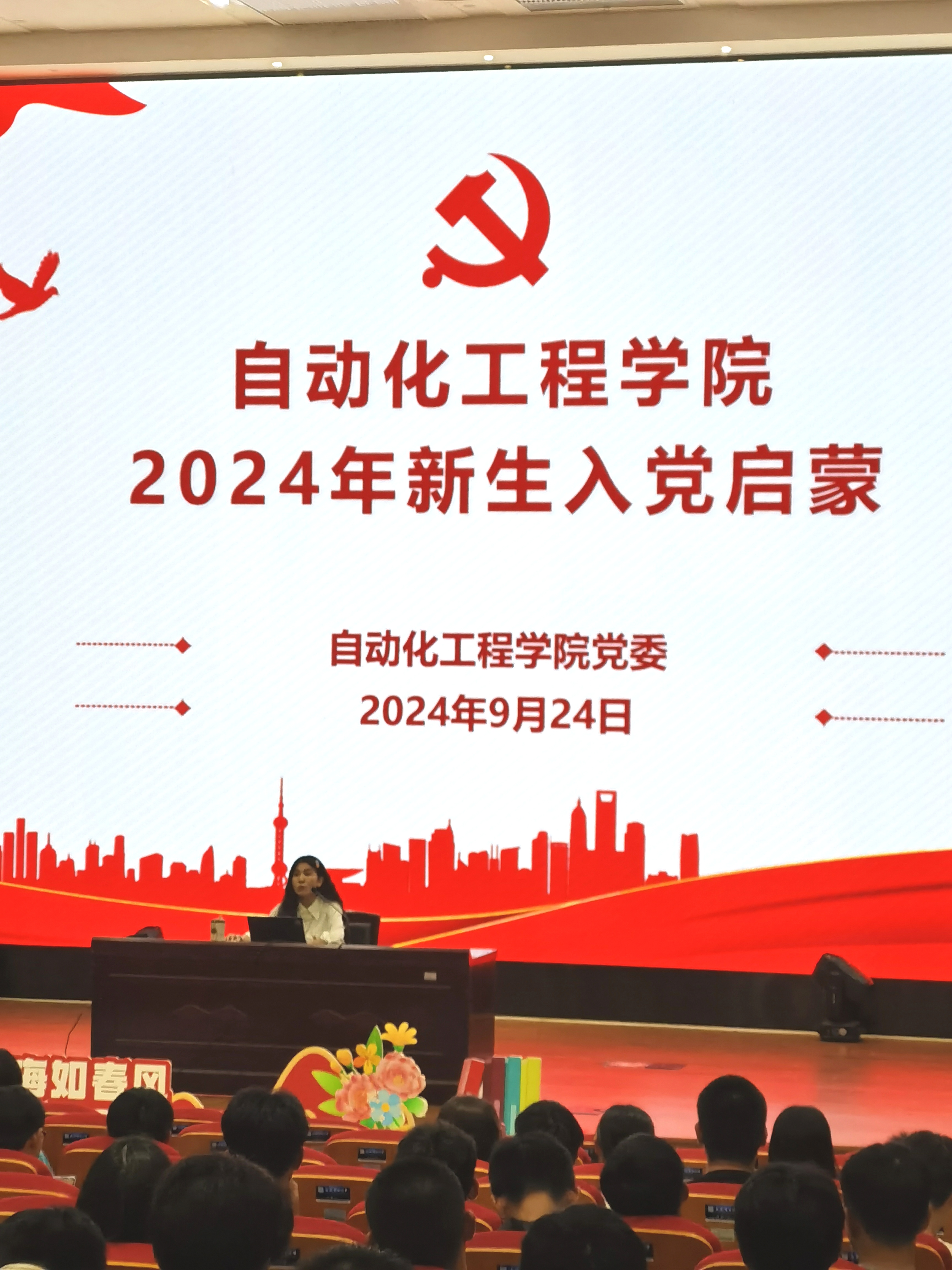 为加强对2024级本科新生的思想引领,激发青年老员工的政治热情,号召新生积极向党组织靠拢,9月24日下午,304永利集团于临港校区学术楼117室组织开展2024级本科新生入党启蒙教育,300余名新生参与此次会议,本次大会由控制工程研究生党支部书记王旻洁主持。