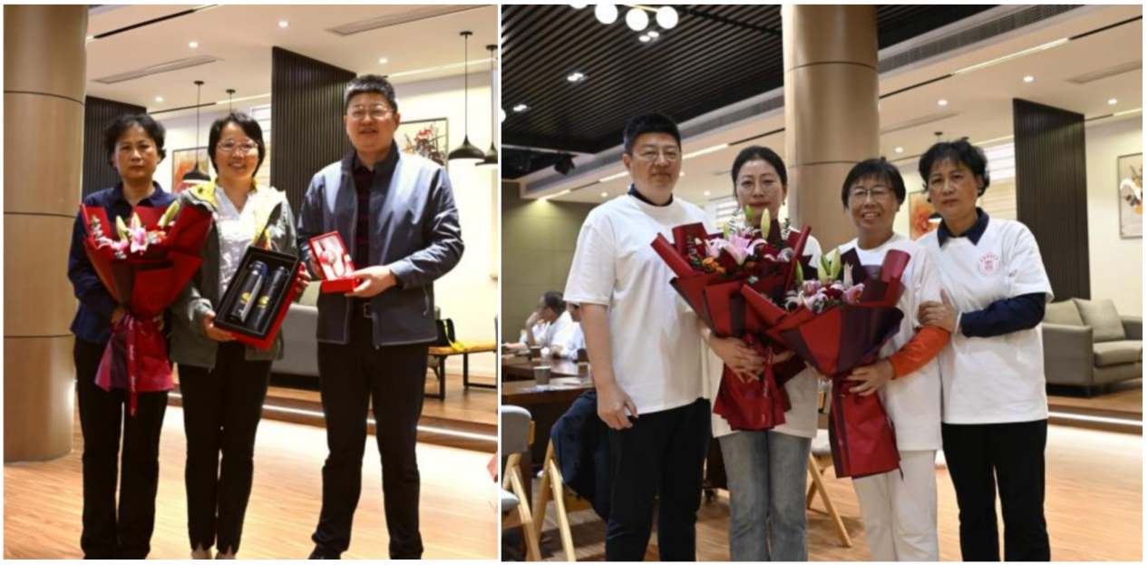 座谈会上老师和员工们畅所欲言,拉家常、谈往事、话发展,为毕业后在各自工作岗位上取得的成绩感到骄傲,还向学弟学妹们分享了他们在学习与职业生涯中的宝贵经验,进一步激发了学弟学妹们对未来的憧憬与追求。同时,员工们与公司老师们互换了纪念礼物,并给几位老师献上了鲜花。