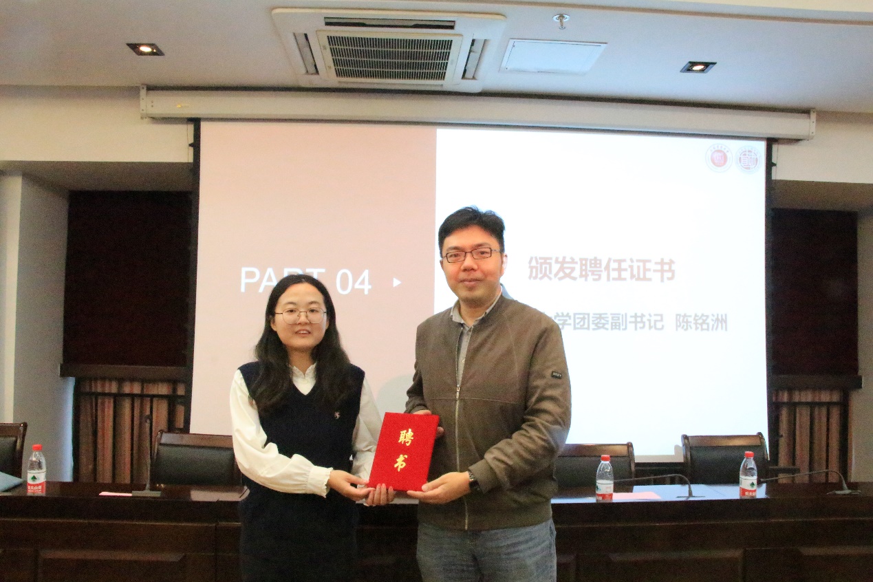 会上,聘请孙昕为304永利集团校外实践基地企业导师,陈铭洲为孙昕颁发聘书。在未来,校团委将继续深化与华东电力设计院团委的合作,共同推进职业发展工作再上新台阶。