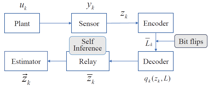 论文“Unscented Kalman Filtering Over Full-Duplex Relay Networks Under Binary Encoding Schemes”(DOI: 10.1109/TAC.2024.3521281)提出了一种基于全双工中继网络的修正型无迹卡尔曼滤波器,具体成果围绕以下几点:一是考虑了一个更为全面的系统模型,包括一般非线性、高斯噪声、全双工中继、二进制编码方案以及随机比特翻转等因素;二是设计了一种能够反映解码误差、比特翻转及全双工中继对滤波性能影响的修正型无迹卡尔曼滤波器,相比于传统的卡尔曼滤波和扩展卡尔曼滤波算法,本文利用无迹变化处理非线性随机动态系统,适合更复杂的非线性建模需求。三是通过矩阵逆引理,推导出保证滤波误差均方指数有界性的充分条件。